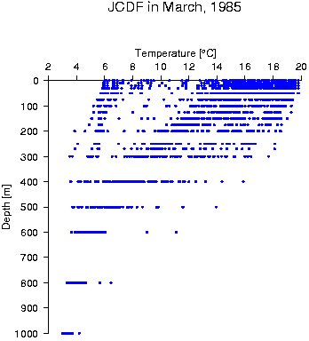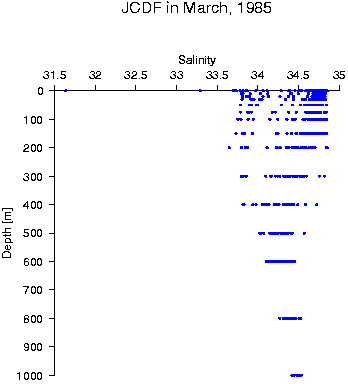 Data status of JCDF in March, 1985