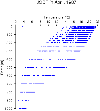 Data status of JCDF in April, 1987