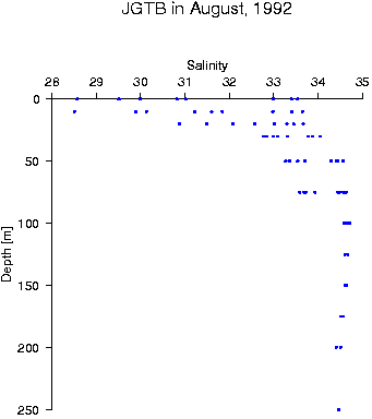 Data status of JGTB in August, 1992