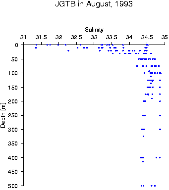 Data status of JGTB in August, 1993