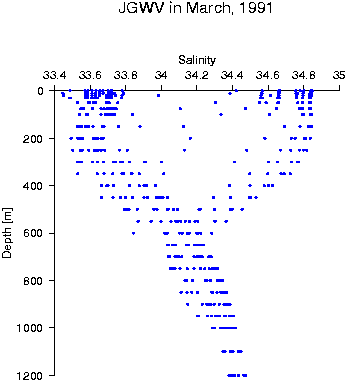 Data status of JGWV in March, 1991