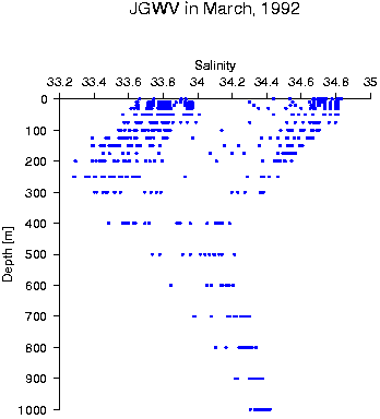 Data status of JGWV in March, 1992